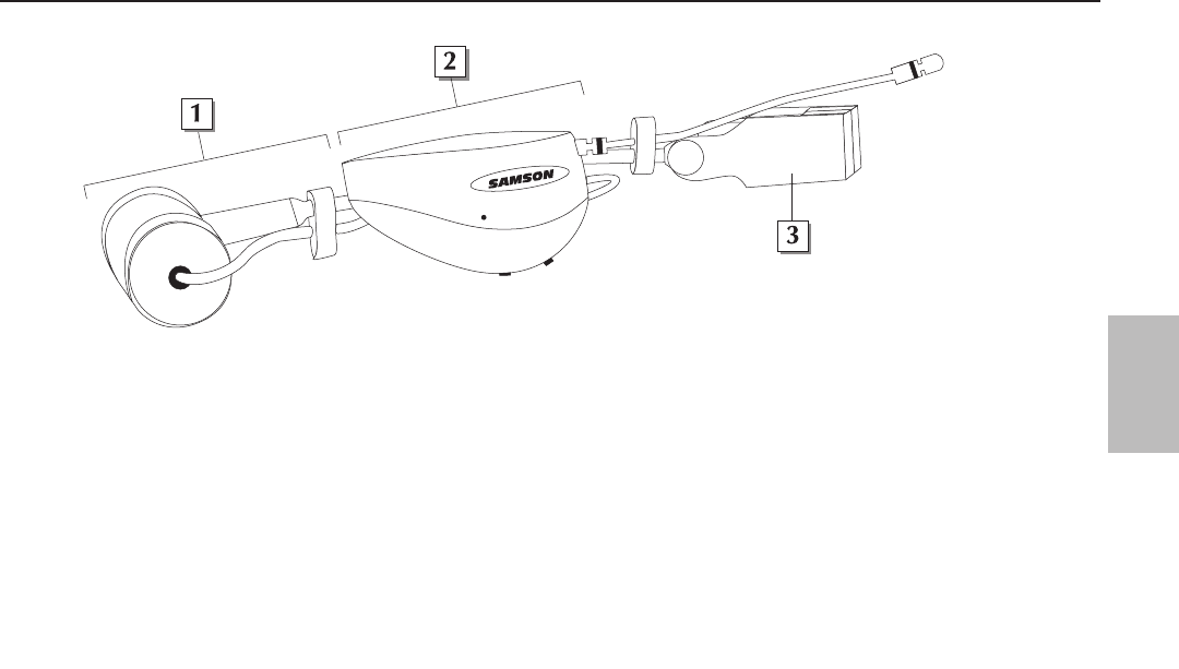 2: Samson-AH1-Kopfbügel-Sender – Für weitere Informationen siehe Seiten 42 - 43 in dieser Bedienungsanleitung.
